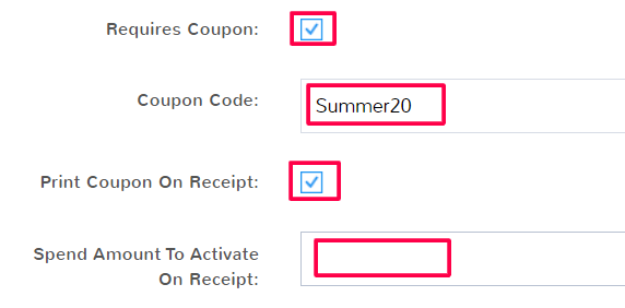 If you only want the coupon to show on the receipt once a customer has spent a certain amount of money, you can enter that here.