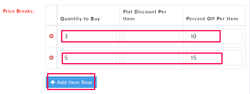 There can be more than one price break for an advanced discount. The Quantity to Buy is the number of an individual item that must be purchased in order for the Flat or Percent discount to be applied.